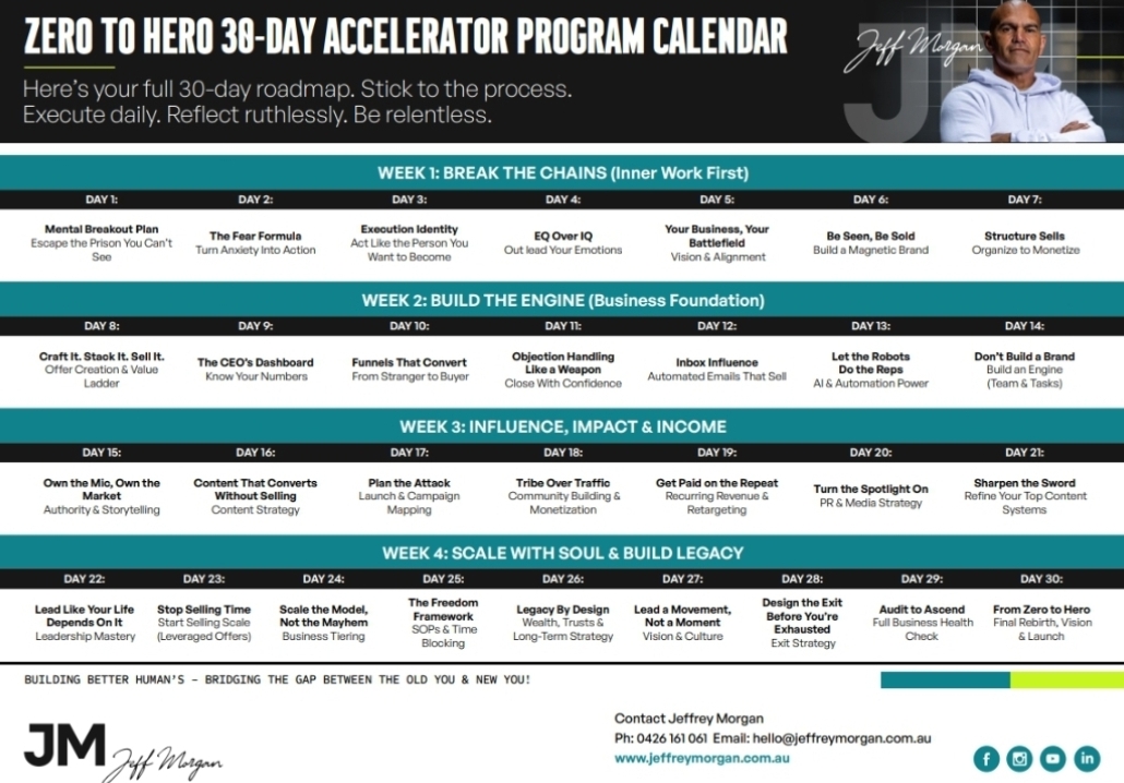 If you step into the Business Accelerator, follow the system day by day (we track your execution so there’s nowhere to hide), and you don’t elevate your business to a gold standard of growth, clarity, and execution—then here’s what happens: